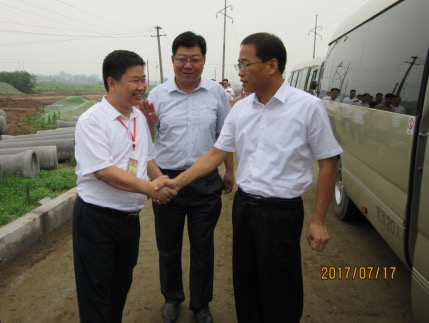图为同发集团董事长张延岭与区委书记侯有民亲切握手。