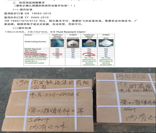 天灾无情,人间有爱。2月8日,河北同发铁路集团送去价值48000元的医疗物资,5600个符合医用标准的医用外科口罩发往武汉市红十字会,鼓励他们坚定信心、同舟共济、科学防治、精准施策,共同打赢这场疫情防控阻击战。